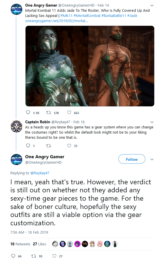 This episode was sparked by a tweet from @OneAngryGamer who had issue with the new redesign for Jade in Mortal Kombat 11.